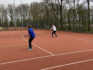 De dag begon om 13.00 uur met een ‘ouderwets’ houten racket toernooi. Zo’n 40 leden, jong en oud, ervaarden hoe het ook alweer was om met een houten racket te spelen. In het begin nog wat onwennig met een kleiner blad en meer gewicht maar al snel werden er mooie rally’s en spannende wedstrijden gespeeld. Naderhand was iedereen het erover eens dat het een leuke ervaring was en een geslaagd toernooi. Het draaide om de gezelligheid en spelplezier, maar uiteindelijk waren er ook 2 winnaars. Dorien en Gabi waren de trotse winnaars van het toernooi.